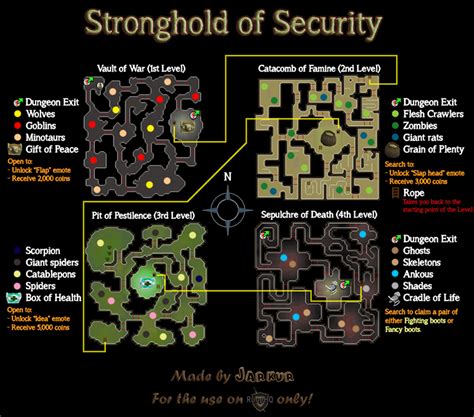 The Stronghold of Security Map is a dungeon that is located beneath the Barbarian Village. It is one of the oldest maps in the game and was introduced in 2006. The map is divided into four levels, each of which has its unique challenges and rewards. The ultimate goal is to reach the bottom level, where you will find a treasure chest with valuable loot. However, getting there is not easy, and you will have to overcome various obstacles and monsters.